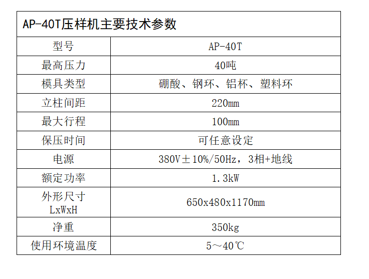 AP-40T壓樣機(jī)是我公司研制生產(chǎn)的專為X射線熒光光譜儀配套的制樣設(shè)備。該設(shè)備外觀新穎,結(jié)構(gòu)緊湊,可使用硼酸、鋼環(huán)、鋁杯、塑料環(huán)等多種模具,可完美替代國(guó)外同類產(chǎn)品。